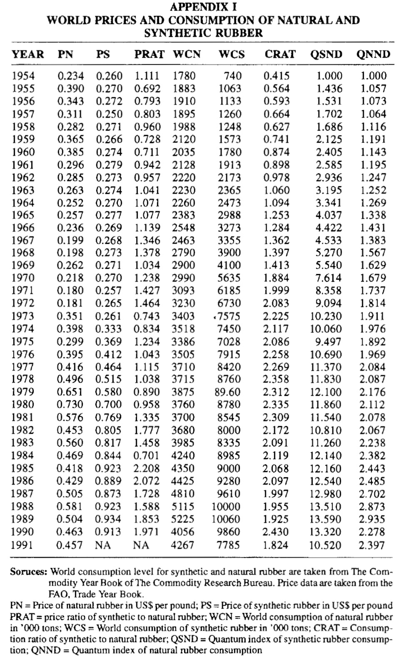 Grilli, E., Helter line, R., Pollak, P., “An Econometric Model of the World Rubber Economy”, World Bank Staff Commodity Paper, #3, Washington DC, 1979.